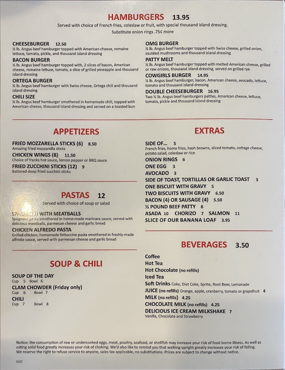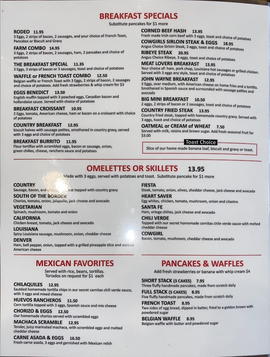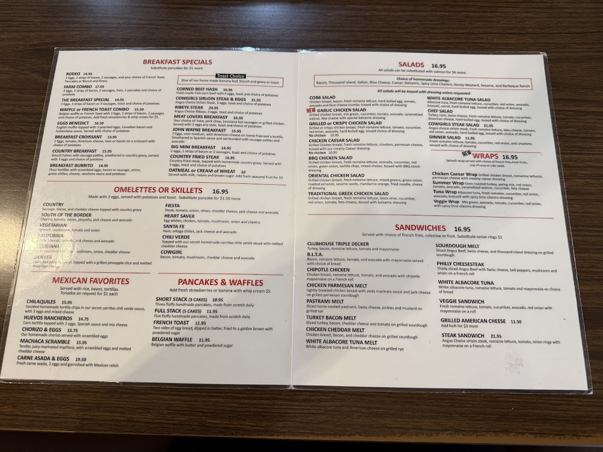 Some reviews suggest that while the food is truly outstanding, minor attention to detail in service could improve the experience further; however, customers like Marla Borokoff express satisfaction with the promptness and quality received, indicating that the ambience and culinary delights easily overshadow any fleeting misses. Whether you're stopping by for a quick bite or a leisurely brunch with friends, Cowgirls Cafe promises a memorable meal steeped in flavor and comfort.