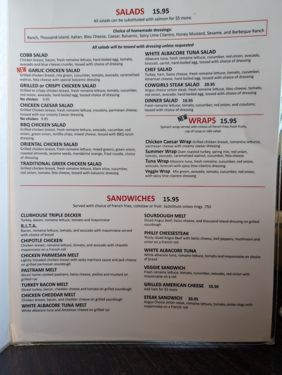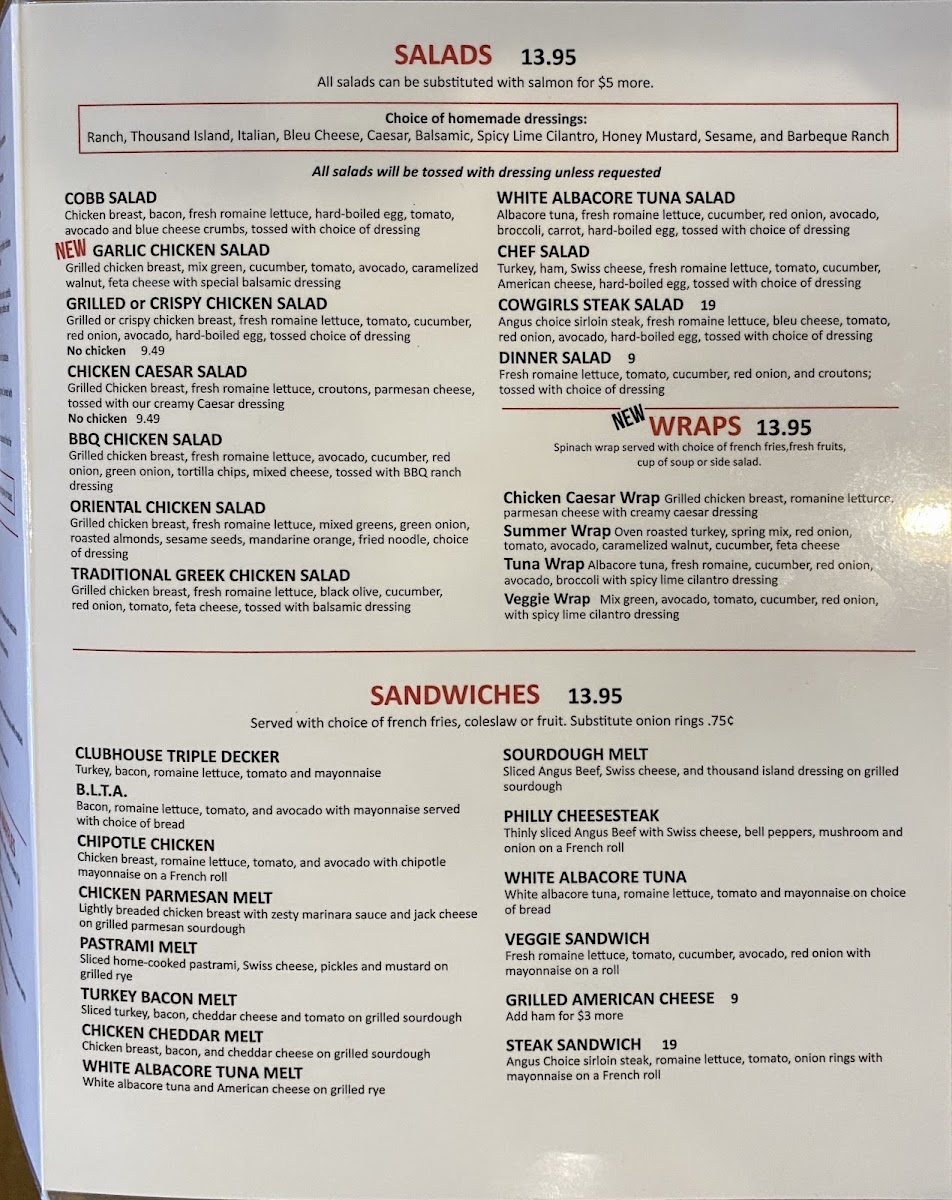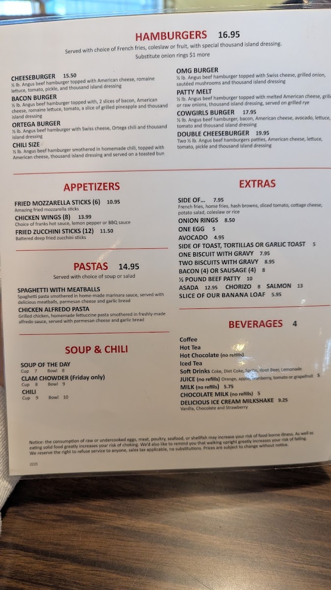 Some reviews suggest that while the food is truly outstanding, minor attention to detail in service could improve the experience further; however, customers like Marla Borokoff express satisfaction with the promptness and quality received, indicating that the ambience and culinary delights easily overshadow any fleeting misses. Whether you're stopping by for a quick bite or a leisurely brunch with friends, Cowgirls Cafe promises a memorable meal steeped in flavor and comfort.